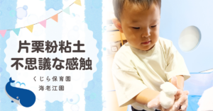 この日は片栗粉粘土の遊びをしました! 粉から触り、水を入れていくとあら不思議!! トロトロしたり、お団子のように握れる硬さの感触に変身しました! 初めての感触で…