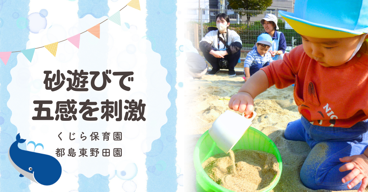 散歩コースの中にみんなが大好きな桜ノ宮ビーチがあります!砂浜があり、砂遊びを楽しめるところです。 手で砂をつかんだり、 カップに入れてはこぼしてみたりと、繰り返し遊ぶ中で砂の感触や形が変わる様子を楽しんでいました。 2歳児の子どもたちは、砂... -