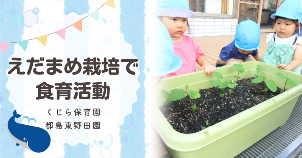えだまめを育てています 子どもたちと一緒に成長を見守る 2024年、都島東野田園では「えだまめ」を育てています。子どもたちは「えだまめぽったん」の歌を歌いながら、水やりを楽しんでいます。みんなで力を合わせて育ててきたえだまめ、今週には収穫でき... -