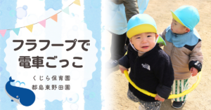 この日は、フラフープを使って電車ごっこを楽しみました。