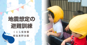 保育士の声かけで行動する地震想定の避難訓練