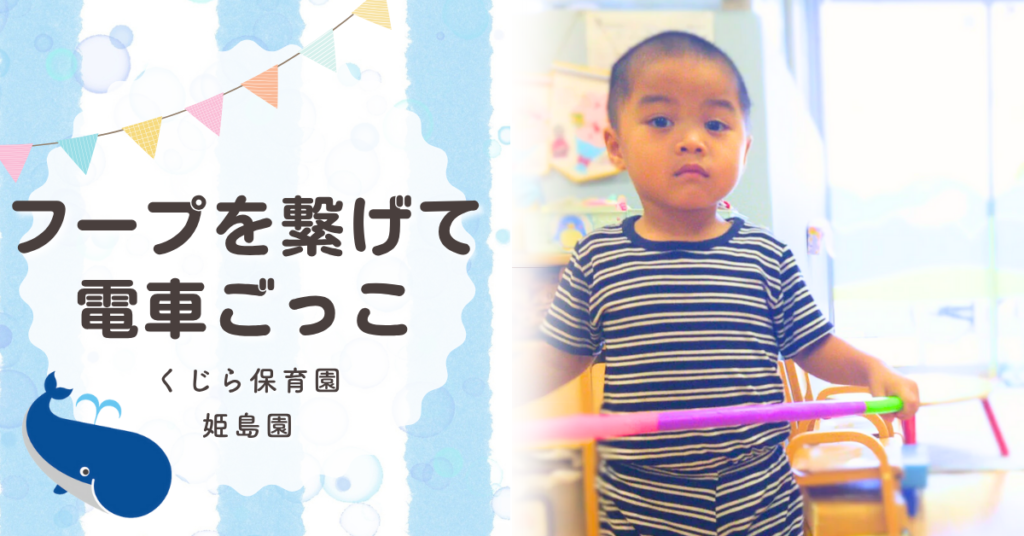 保育園の室内遊び|フープをつなげて電車ごっこ