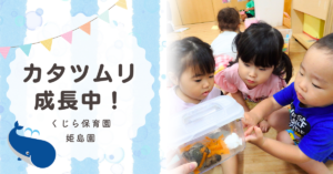 園で飼育しているカタツムリの赤ちゃんが少しずつ大きくなってきました。最初は赤ちゃんが小さすぎて、保育者も子どもたちもどれが赤ちゃんか見つけられないこともあっ…
