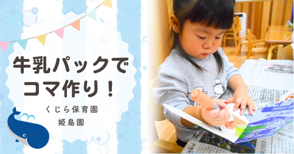 牛乳パックでコマ作り!保育園の手作りおもちゃ