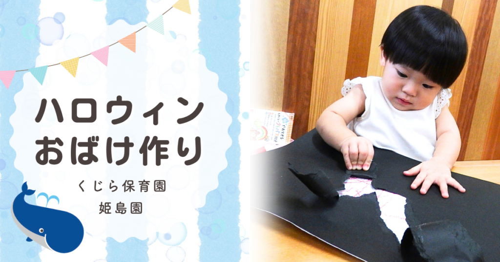 10月の壁面製作でオバケを作りました♪ なぐり描きをした画用紙の上から黒い画用紙を貼り、 なぐり描きが見えるように黒い画用紙をちぎってオバケの形を表現しました。 オバケの目や口などのパーツは水のりを使って貼りました。 子どもたちはのりのべたべた... ブログすずらんテープで感触あそび