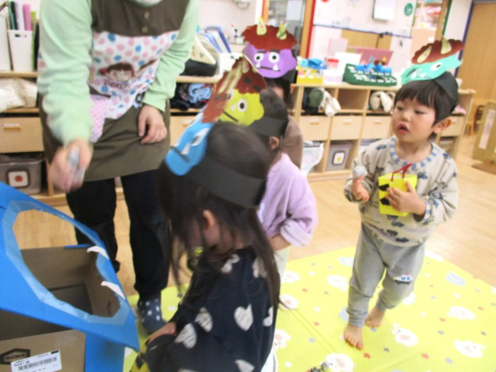 「こわいけどかわいいね」「この鬼さんは笑ってるよ!」と、保育士やお友だちとの会話も弾みました。