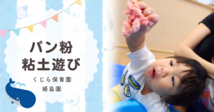 ラッコ組(0歳児)、ペンギン組(1歳児)、イルカ組(2歳児)で、パン粉の粘土遊びをしました。まず初めに、パン粉をそのまま触って遊び感触を楽しみました。 パン粉の…