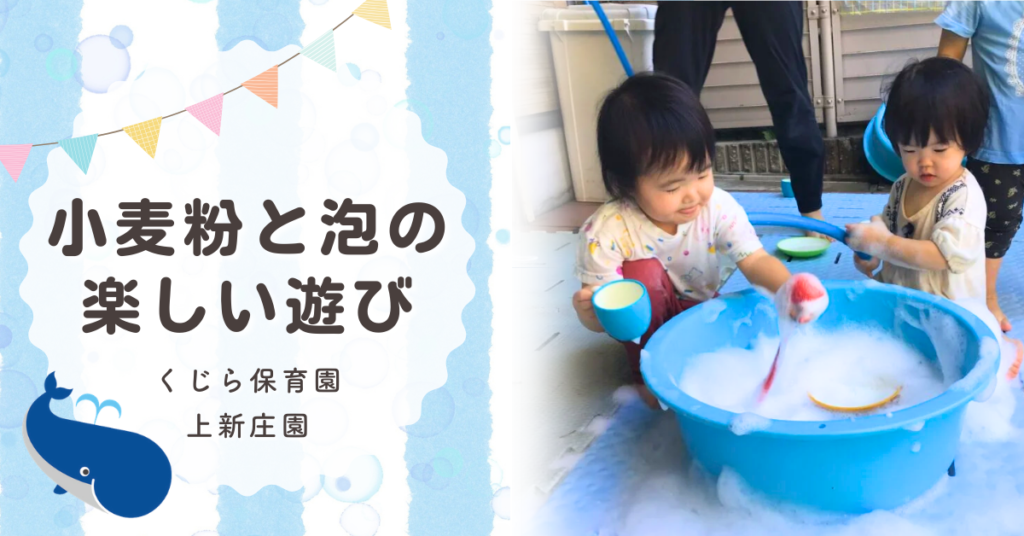 乳児の感覚遊び 小麦粉粘土と泡遊びを満喫