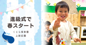 進級式の後、子どもたちは新しいクラスでの活動を心から楽しんでいる様子がうかがえました。少し大人っぽい表情で新たなスタートへの喜びを分かち合う姿は、保育士一同にとっても感慨深いものでした。