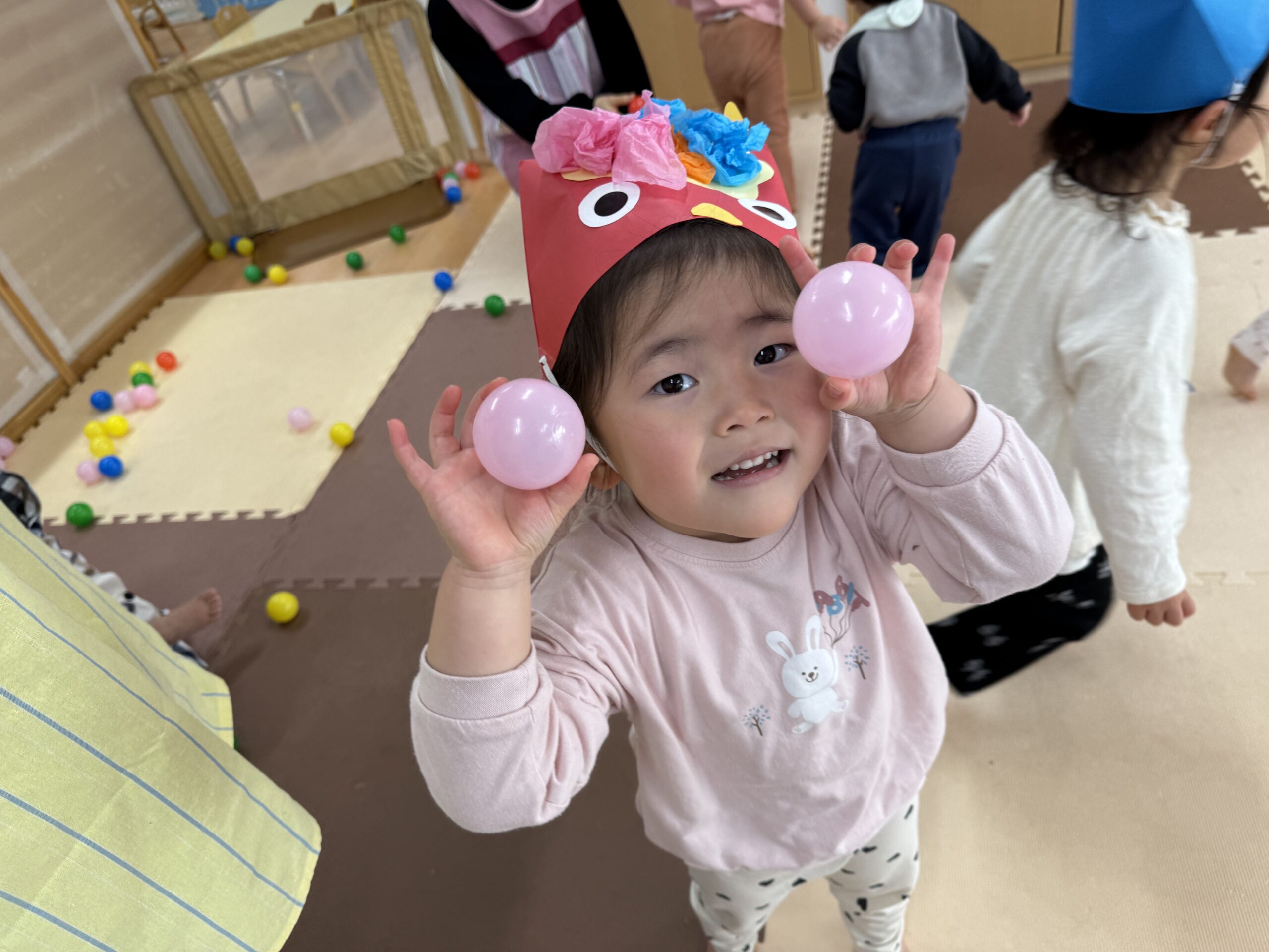 保育園の節分イベントで風船鬼を退治!