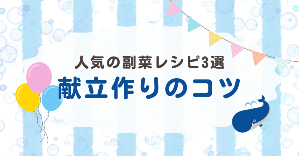 毎日の献立作り、どうしていますか?家族が飽きず、栄養バランスも考えた料理を用意するのは、大変な作業です。そんな献立作りのコツと、子どもにも大人気の副菜レシピを今回はご紹介します。 献立を立てる3つのポイント 1.主菜から決める まずは献立の中... -