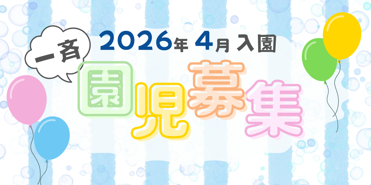 2026年度4月入学園児一斉募集のお知らせです。募集人数や募集期間は各自治体によって異なりますので、各園HPからご確認ください。