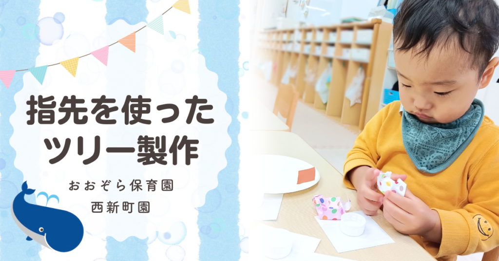 おおぞら保育園西新町園では、クリスマスに向けて子どもたちひとりひとりの小さなツリーを作りました。色紙とシールでペットボトルのキャップと紙皿を華やかに装飾してくれました。 小さな色紙でキャップを包むことは、指先を使う細やかな作業ですが、 2歳... -