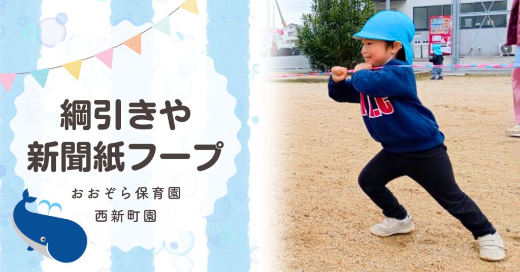 保育園で綱引きや新聞紙フープでおいかけっこ