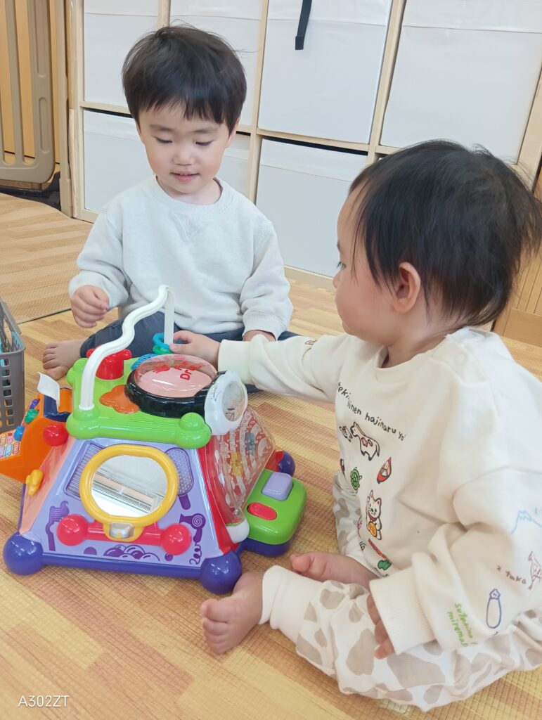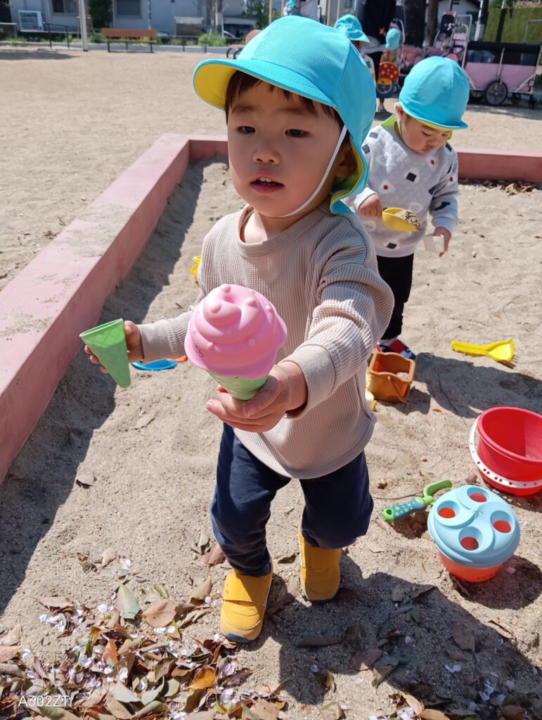 新年度が始まり、0歳児らっこ組、1歳児ぺんぎん組、2歳児いるか組のお子さまたちは、慣らし期間を経て、徐々に新しい環境に適応しています。初めは保護者の方と離れる際に涙を見せる場面もありましたが、今ではお気に入りの玩具や遊具で、楽しく遊ぶ様子が見られるようになりました。