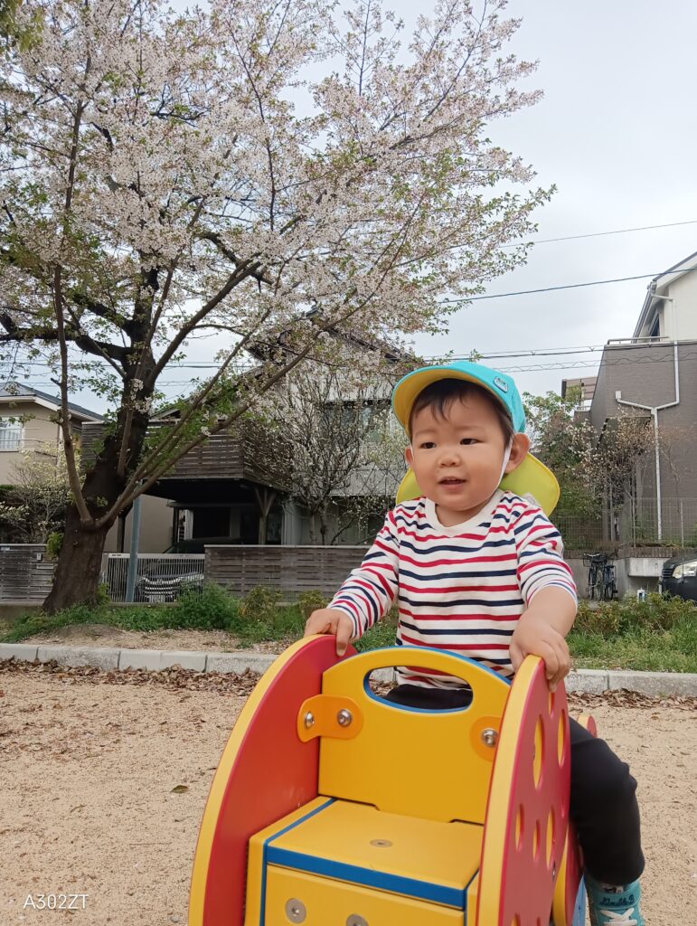 バギーに乗りながら外の空気を感じ、春を知らせる桜の木々に興味を示す光景は、