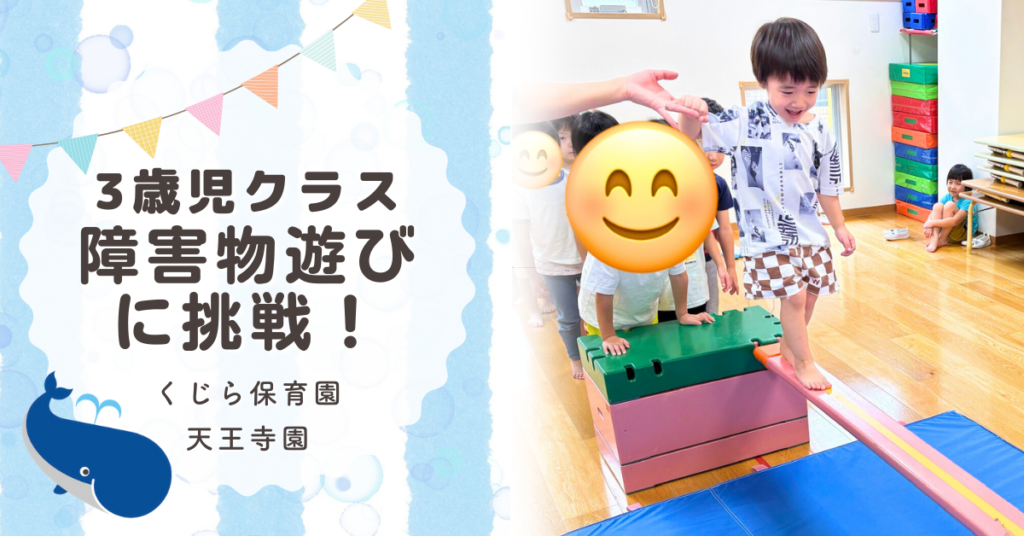くじら保育園天王寺園3歳児です。障害物遊びに挑戦!まずはぽっくりを始めて子どもたちと一緒にやってみました。 最初は乗ることにも苦戦していましたが少しずつやり方が分かってきたようで、上手に乗りこなせている子もいましたよ。 その次は平均台にも挑... -