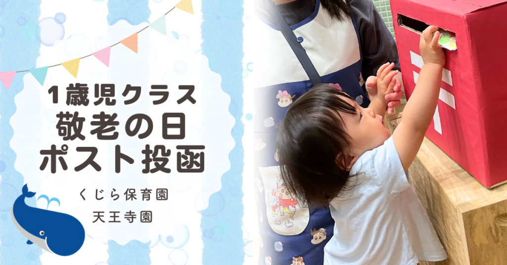 こんにちは。くじら保育園天王寺園1歳児クラスです。今日は敬老の日のハガキを自分たちでポストに投函しました。 ポストを探して保育園内を探検!無事発見すると「あったー!」と指していました。 保育士がお手本で手紙をポストに入れると”自分もしたい!”... -