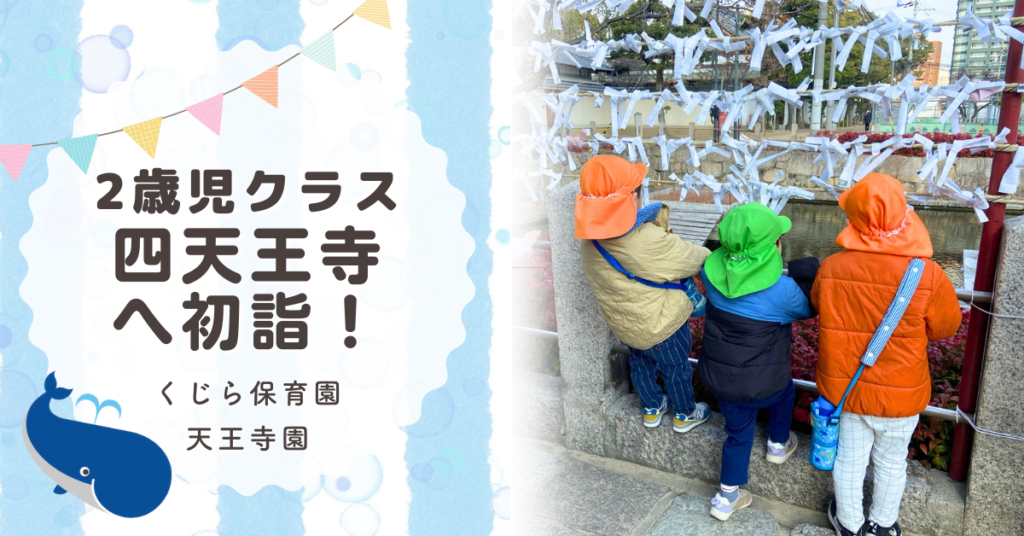 こんにちは!くじら保育園天王寺園2歳児クラスです。今日は、ぞう組のお友だちと一緒に四天王寺さんまで初詣に行きました。仲良く手を繋ぎ、「あけましておめでとう!」と、上手に新年のご挨拶をしていました。 たくさんの人がいましたが、にこにこ笑顔で... -