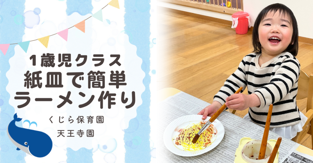 1歳児が挑戦した楽しいラーメン作り 1歳児クラスのりす組では、「ラーメン作り」に楽しく挑戦しました。まず紙皿に黄色のクレパスでぐるぐる模様を描き、そこに茶色の絵の具を塗ることで、はじき絵を楽しみました。この活動に取り組む子どもたちは興味津々... -