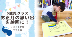 こんにちは!くじら保育園天王寺園5歳児クラスです。明けましておめでとうございます。本年もどうぞよろしくお願いいたします。 お休み明けはみんな元気に登園してくれ…