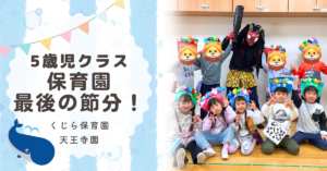 この節分行事を通して、5歳児らいおんクラスの子どもたちは一つの大切な思い出を作ることができたのではないでしょうか。卒園を前に、また新たな一歩を一緒に進んでいきましょう!