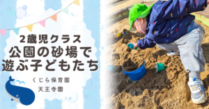 さらに、この日の魅力は砂の感触を楽しむ遊びにもありました。スコップやバケツを使いながら掘ったり、盛ったりと工夫を凝らした遊びに一生懸命取り組む姿が見られました。一つひとつの動作を通して与えられる新しい発見は、子どもたちにとって大切な学びの瞬間となったようです。