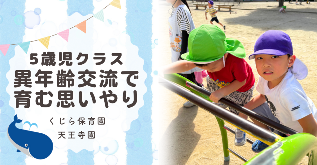 こんにちは!くじら保育園天王寺園5歳児クラスです。0歳児さん、2歳児さんと一緒に国分公園に行きました。手を繋ぎながら隣を気にして歩幅を合わせて歩いていましたよ!公園では、0歳児さんが乗っている引き車をゆっくりと引っ張ってあげました。 「大丈夫... -