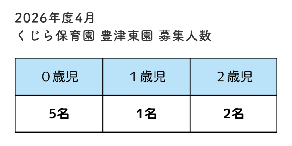 くじら保育園 豊津東園の募集人数は、以下の通りです。