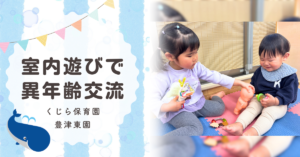室内では、0歳児ひよこ組、1歳児りす組、2歳児きりん組の子どもたちが、それぞれの発達段階に合わせた遊びに夢中になっています。