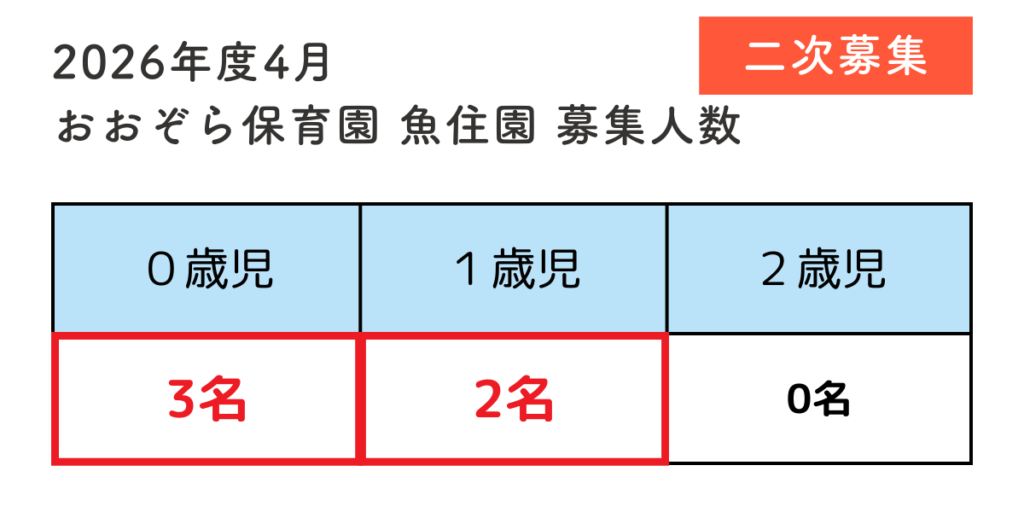 おおぞら保育園 魚住園の募集人数は、以下の通りです。