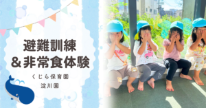 9月1日は防災の日。『過去の教訓に倣って、備えよう』ということで先日、避難訓練を行いました。午睡が終わるころ、「地震です」と訓練が始まりました。まだ寝ていた子…