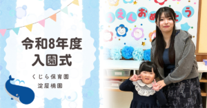 令和8年度の入園式が水曜日に開催されました。今年度は、0歳児ひよこ組と3歳児ぱんだ組に、たくさんのかわいい園児たちを迎えました。