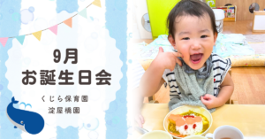 9月生まれのお友だちのお誕生日会がありました!お名前を呼んでもらうと少しドキドキしながらも上手にお返事をして前に出てきていましたね♪ 幼児さんは自分でお名前と何…